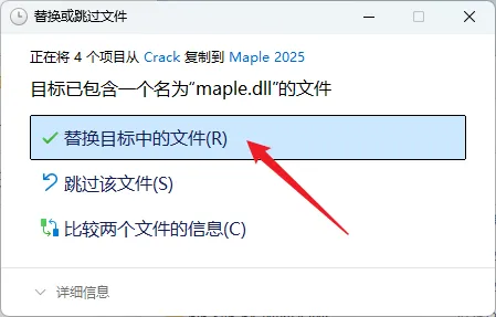19.点击【替换替换目标中的文件】。