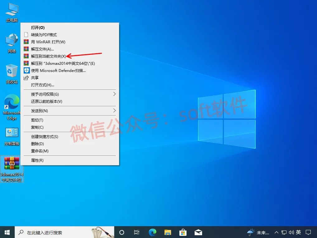 1,右键解压安装包至当前文件夹(本教程安装包放至桌面为例。可自由放在磁盘内)(注意,解压之前先关闭杀毒软件和window安全中心,避免注册机被删除。)