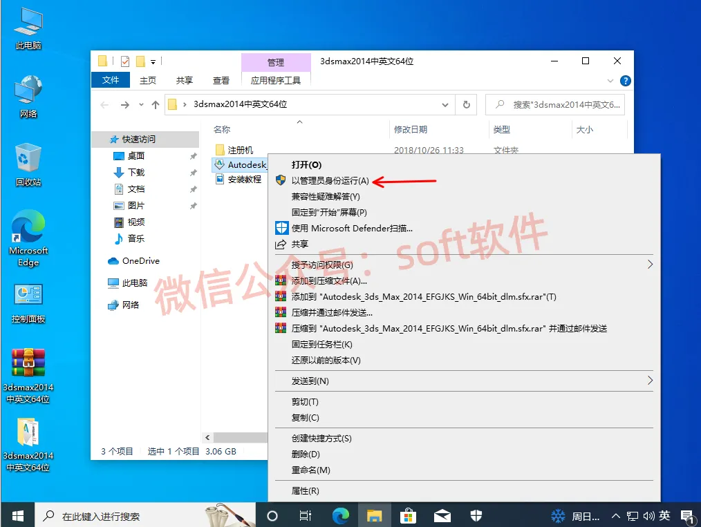 2,进入解压生成的文件夹里面,右键以管理员身份运行安装程序