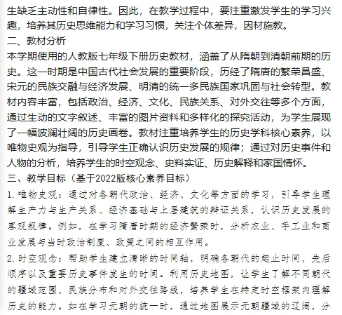 七年级学生正处于从小学到初中的过渡阶段,对历史知识充满好奇,但尚未形成系统的历史思维和学习方法。在之前的学习中,学生对一些简单的历史事件和人物有初步了解,但对于历史发展的脉络、因果关系以及历史现象背后的深层原因理解尚浅。部分学生学习积极性较高,但也有部分学