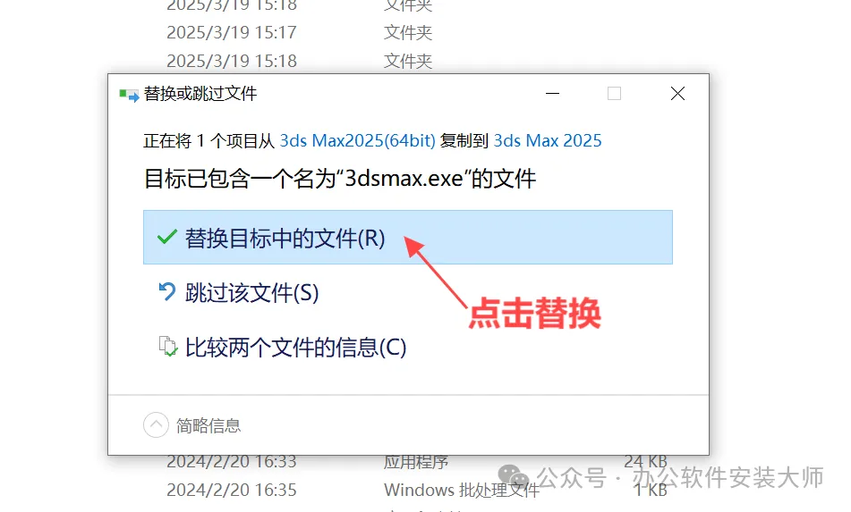 ④点击替换目标中的文件