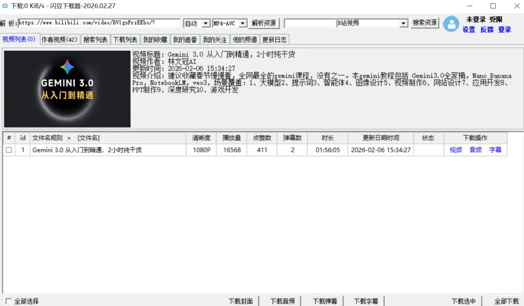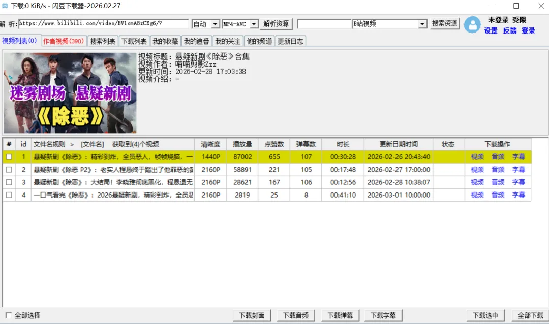 画质也能随便选,从4K到1080p60、720p什么的都有,最牛的是,会员视频都能解析下载!比如B站,你登录账号后,可以一键把你关注的视频、收藏夹里的内容,甚至番剧全批量拉下来,下载完还会自动转码合并,完全不用自己动手折腾。