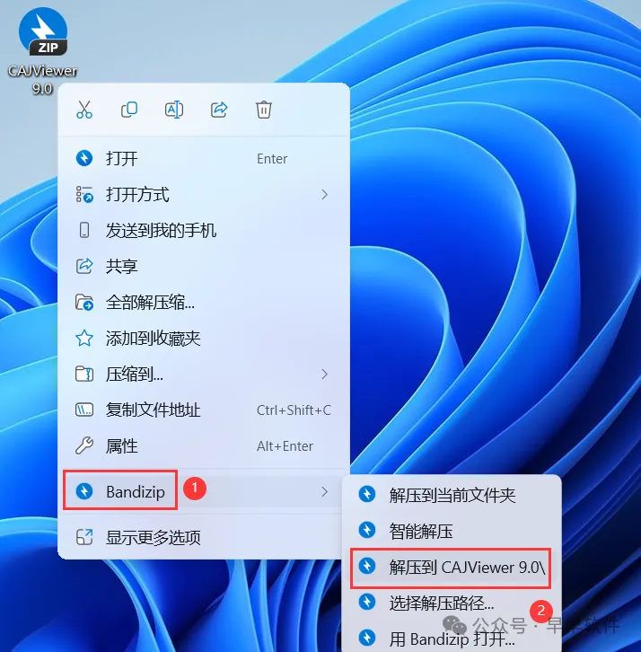 1、下载CAJViewer 9.0软件安装包到电脑上,右键选择【解压到CAJViewer 9.0\】