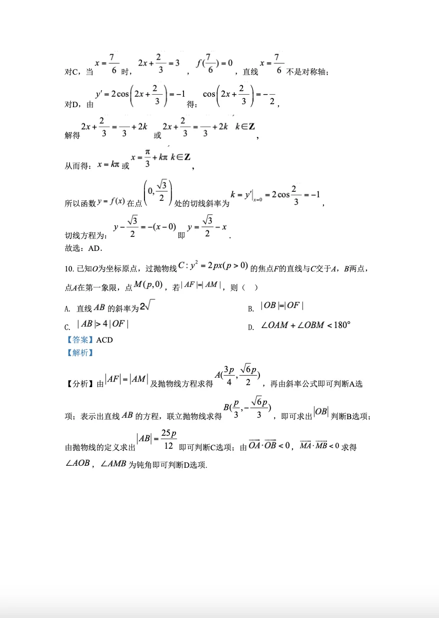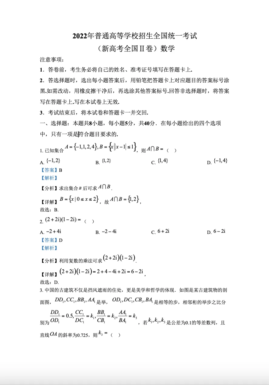 >2022年新高考Ⅱ卷数学真题-答案解析(免费下载)