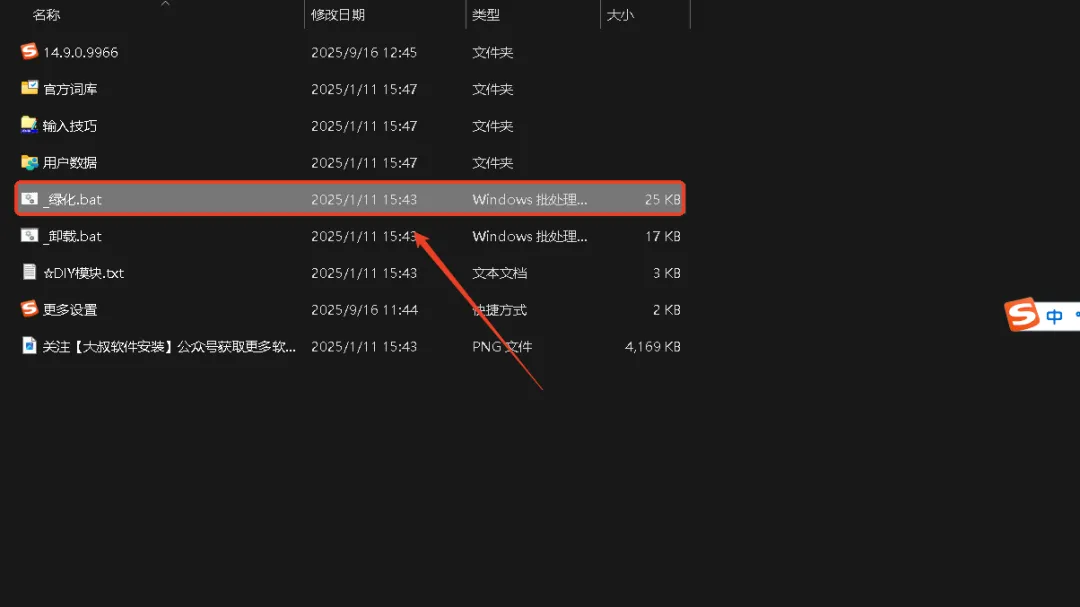 2、双击绿化 ![]() 3、等待安装成功 注:右下角出现搜狗输入法,就安装成功啦 ![]() |