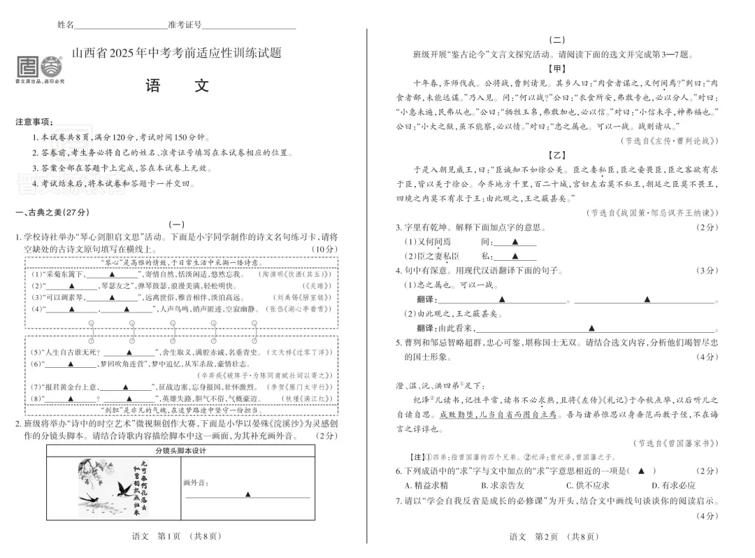 25语文适应性训练试卷