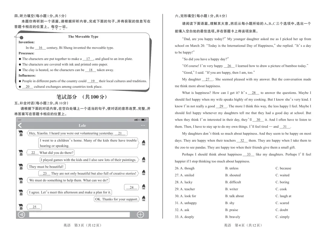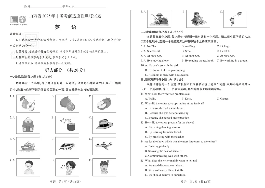 >【免费下载】25年中考适应性训练试题+答案+答题卡+音频