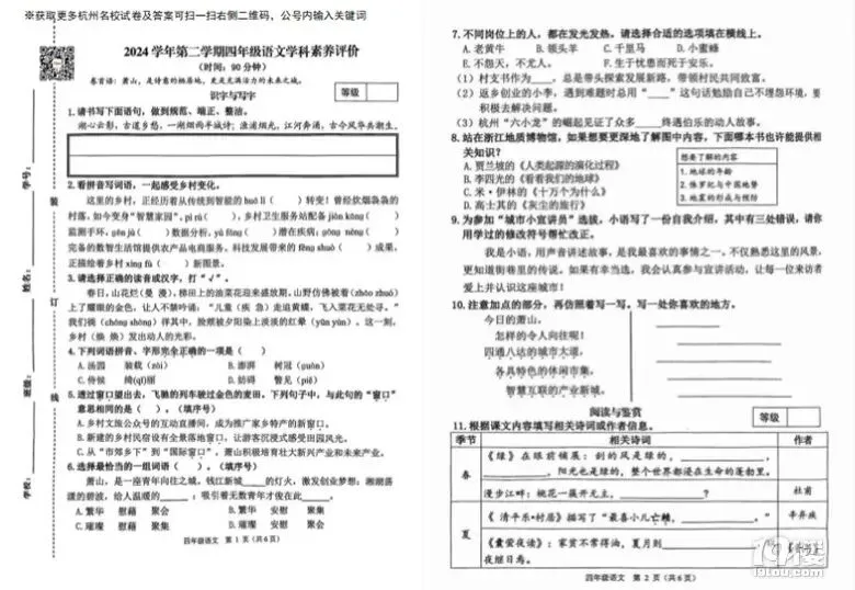 今天为大家准备的是家长上传的2025年萧山区四年级语文期末试卷,获取试卷完整电子版pdf免费下载及参考答案分析请点击文中的小程序!