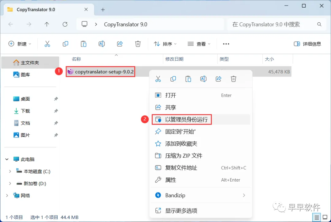 3、找到【copytranslator-setup-9.0.2】应用程序,右键选择【以管理员身份运行】它