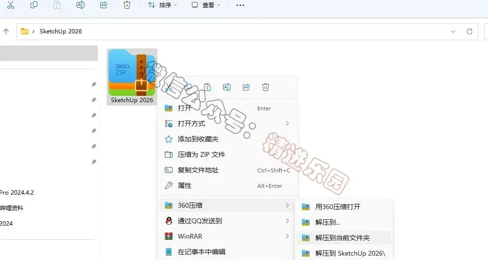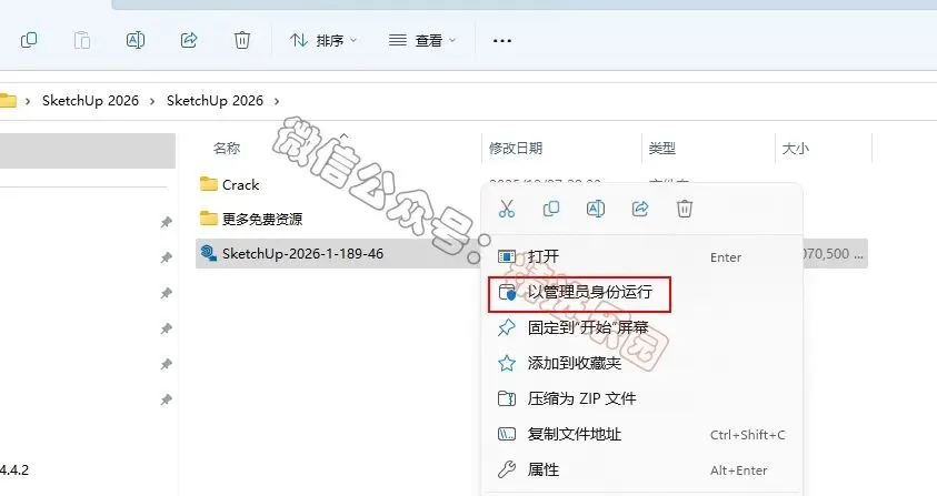 1、下载SketchUp 2026软件安装包到电脑上,右键选择【解压到当前文件夹】2、找到【SketchUp-2026-1-189-46】应用程序,右键选择【以管理员身份运行】3、不勾选【用于SketchUp的V-Ray】,可以自定义安装路径,小编这里默认安装,点击【安装】。7、回到桌面,右键桌面上的【SketchUp 2026软件图标】,点击【打开文件所在的位置】8、点击地址栏里,点击【SketchUp 2026】11、回到桌面,右键桌面上的【SketchUp 2026软件图标】,点击【打开】14、以上就是SketchUp 2026 软件安装的全过程,要是对你有帮助的话,请为小编点个赞!