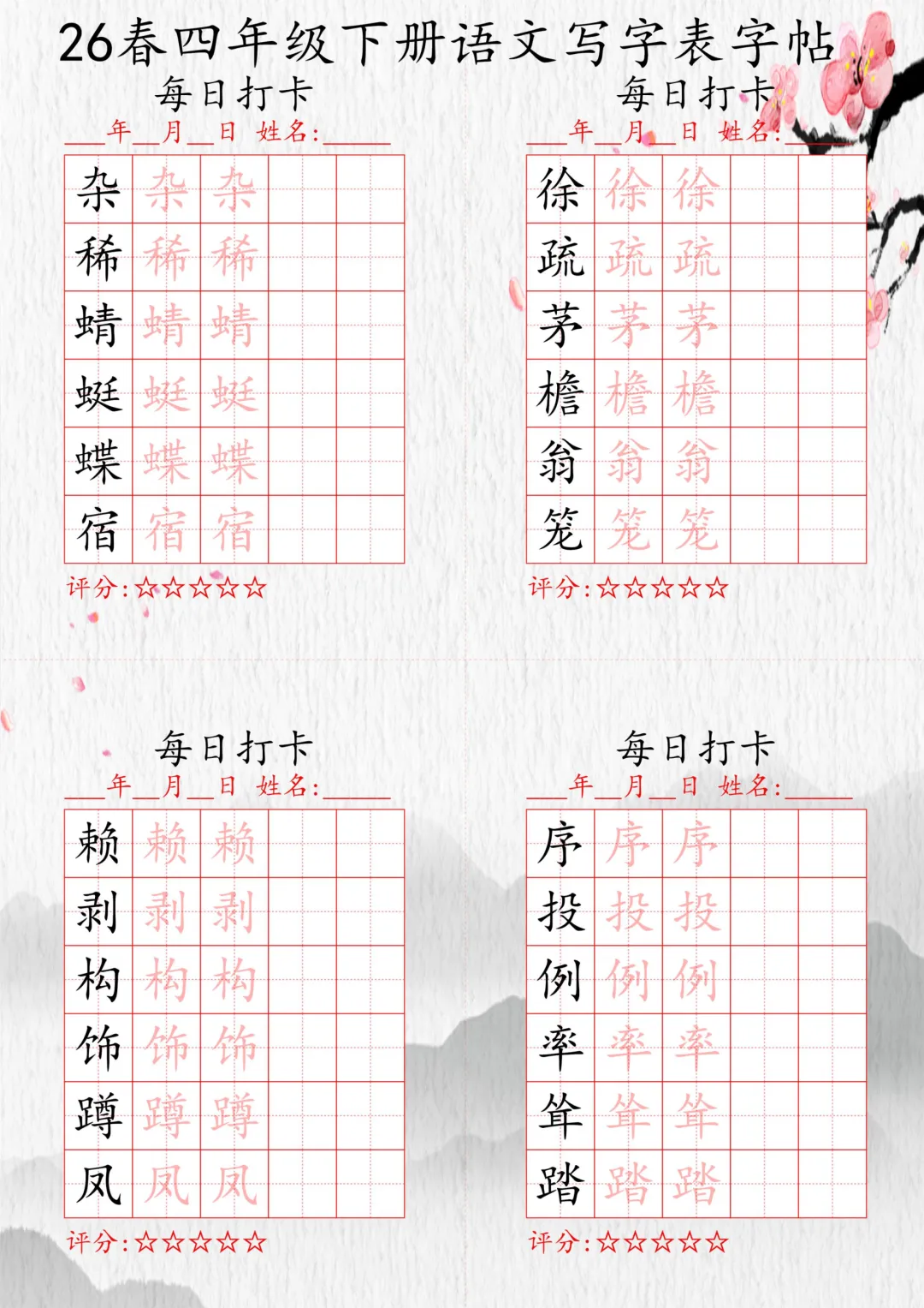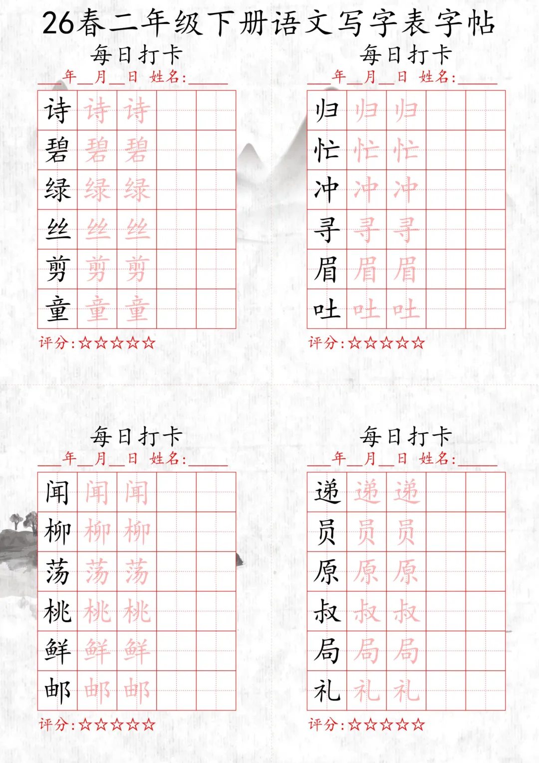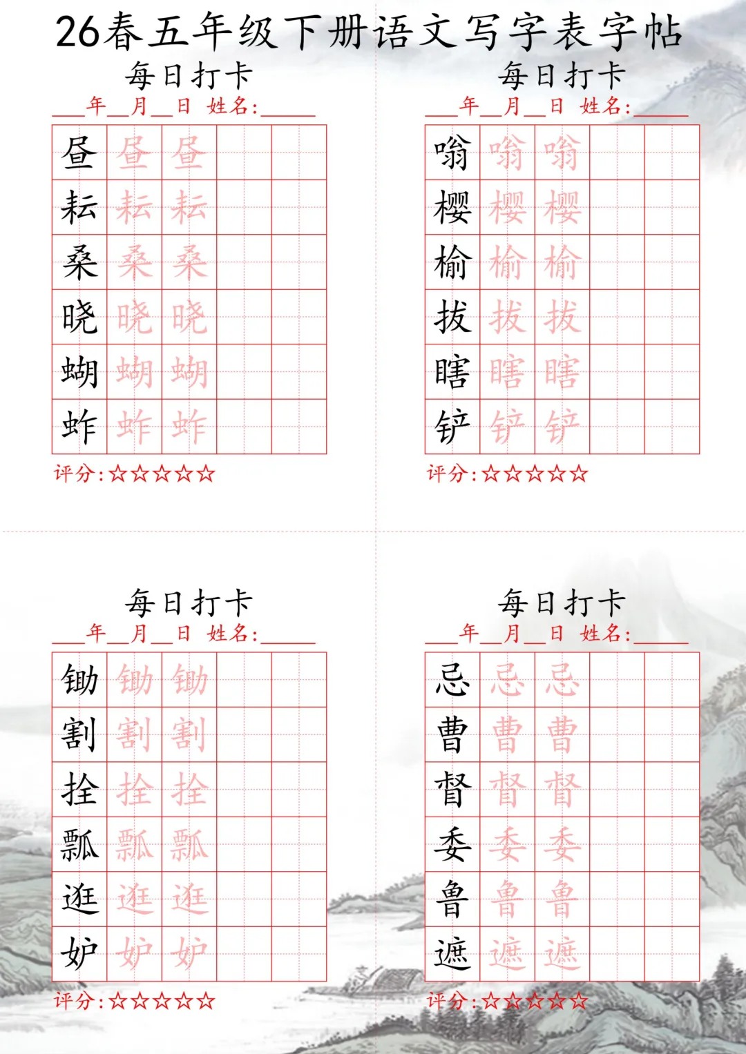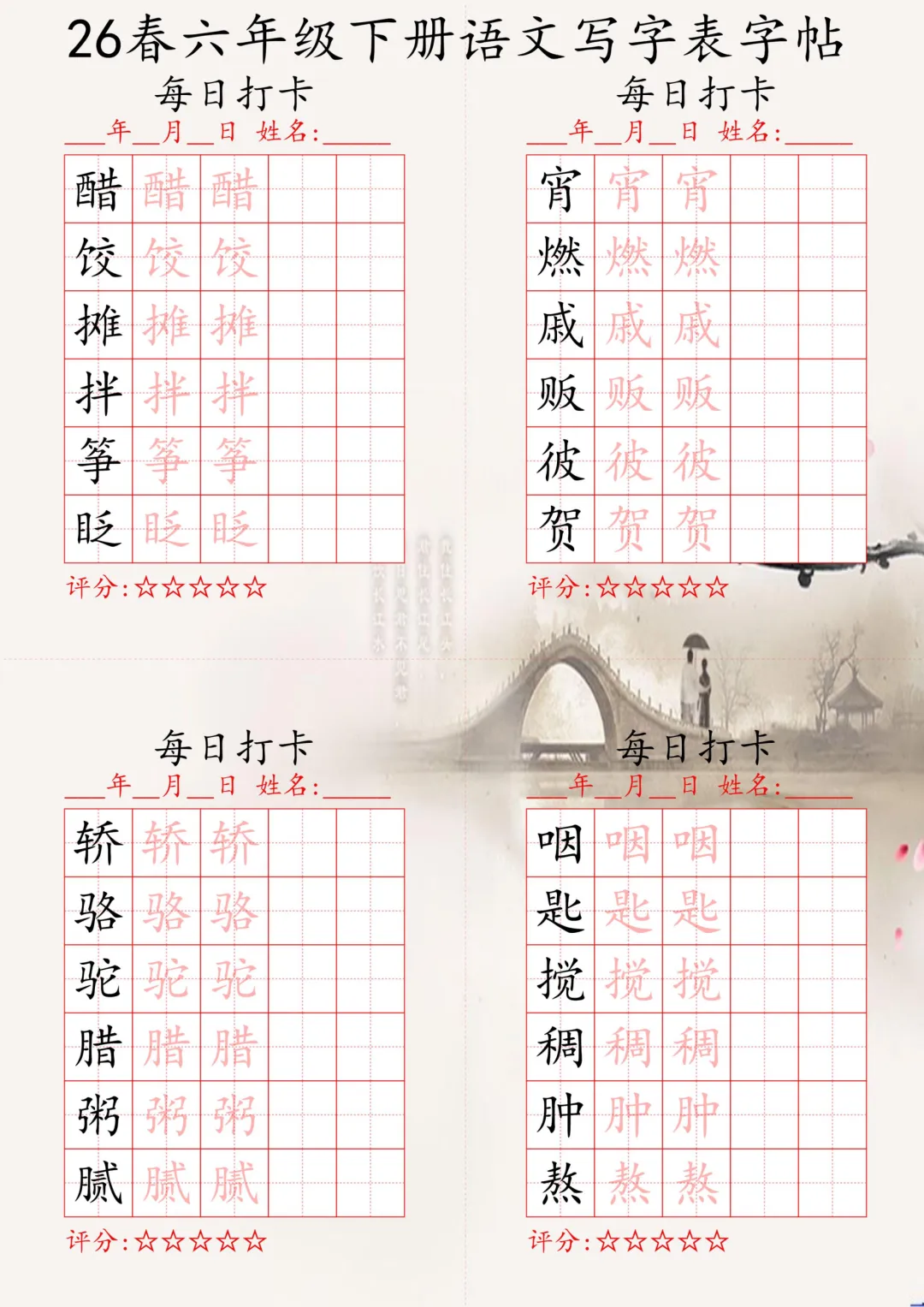 【免费下载】1-6年级语文下册《每日打卡练字帖》| 可下载打印