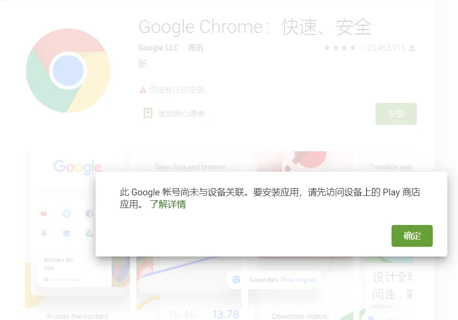但是它会出现这样的提示:此 Google 帐号尚未与设备关联,要安装应用,请先访问设备上的 Play 商店应用。