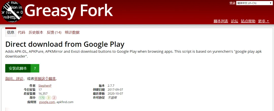 所以推荐给大家一款这款油猴插件:Direct download from Google Play,下载就简单多了。