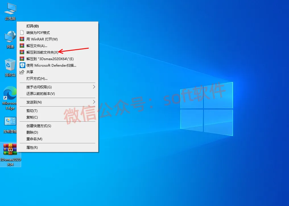 1,右键解压安装包至当前文件夹。本教程安装包放至桌面为例,可自由放在磁盘内(注意,解压之前先关闭杀毒软件和window安全中心,避免注册机被删除。)