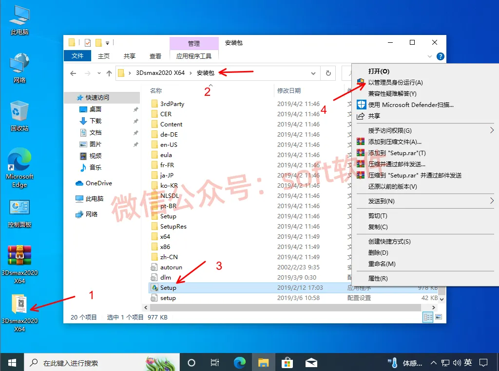 2,进入解压生成的文件夹里面,打开安装包文件夹,右键以管理员身份运行Setup安装程序