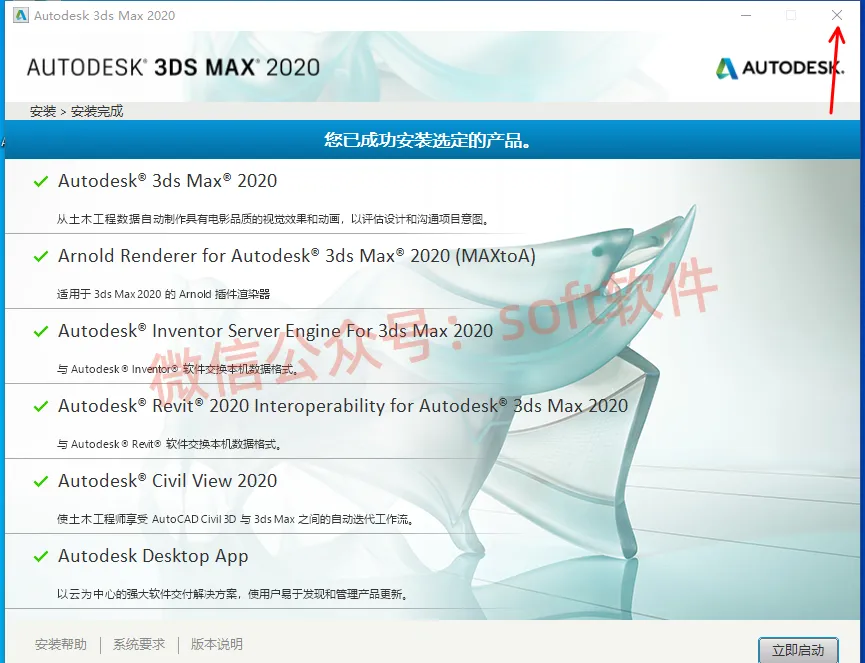 7,安装成功,右上角点X关闭安装程序