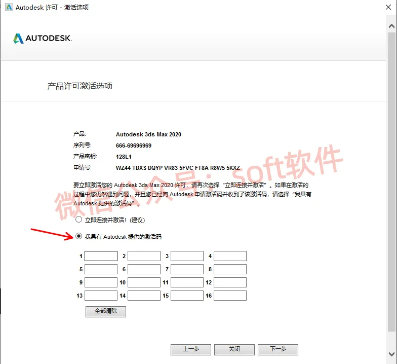 15,勾选我具有Autodesk提供的激活码。不要关闭该页面。