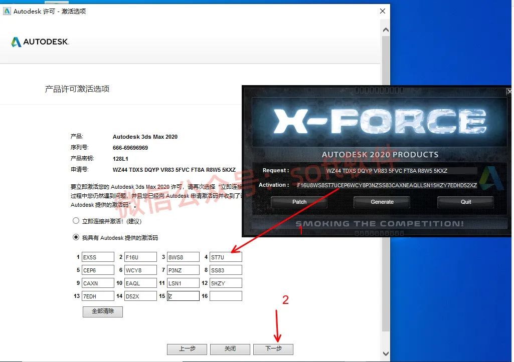 19,Ctrl+C复制生成的激活码,然后Ctrl+V粘贴至下面的空格处,然后点下一步