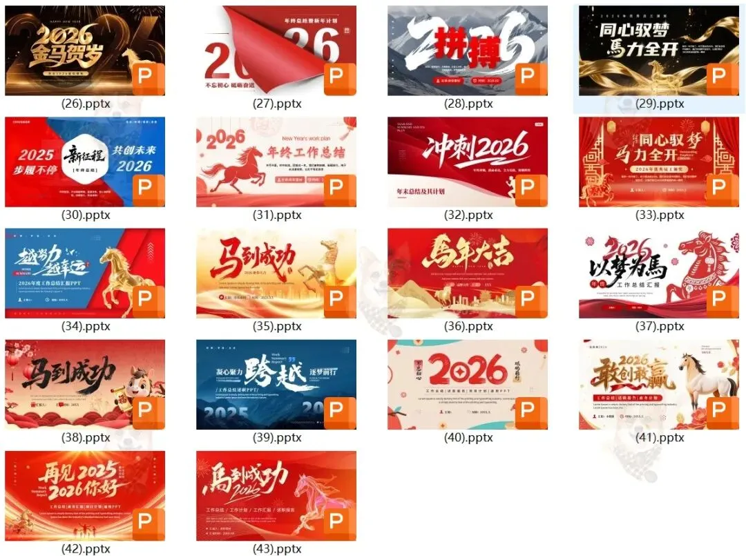 不绕弯子、不玩套路,今天直接安排职场人的马年开工救星——78套2026马年工作计划PPT模板,免费下载、全程可编辑,78套不重样、全场景覆盖,马年元素拉满,一键套用就能用,彻底告别工作计划PPT内耗,新手也能秒上手!