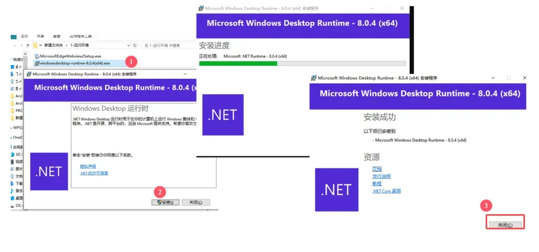 于是我双击windowsdesktop-runtime-8.0.4(x64).exe,后续默认安装等待安装结束。
