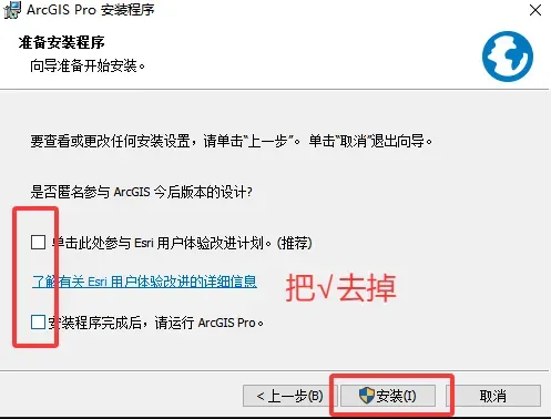 取消参与改进计划与安装完成的勾选。