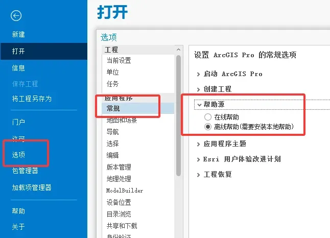 安装完成后,在ArcGIS Pro配置一下帮助为离线帮助源