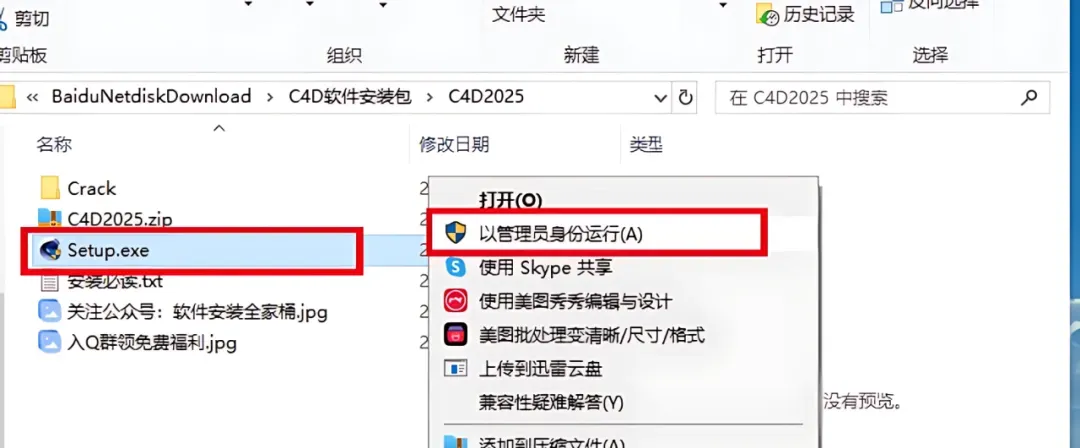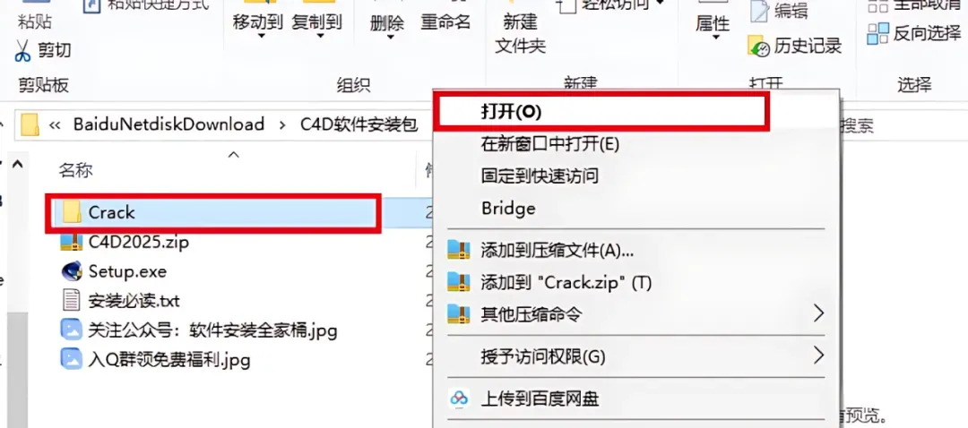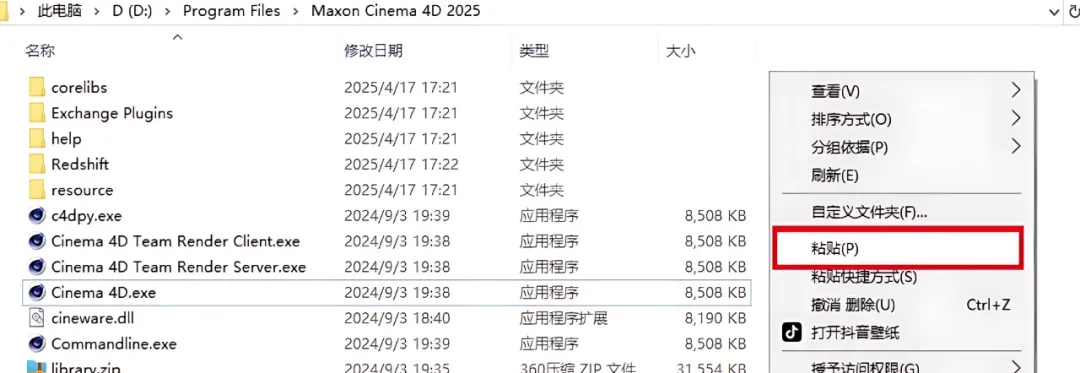 1.鼠标右击【C4D 2025】压缩包【解压到当前文件夹】