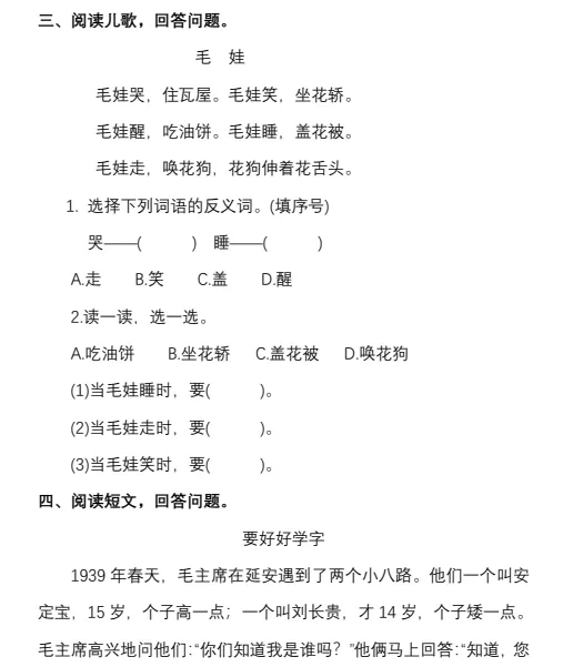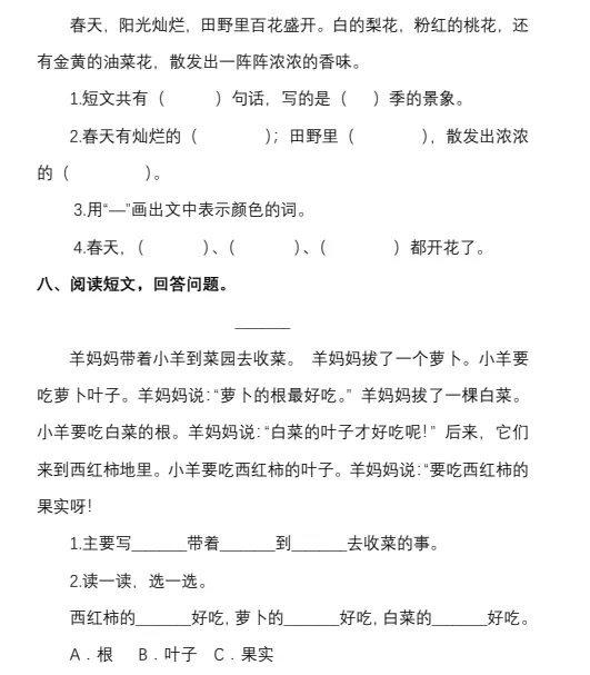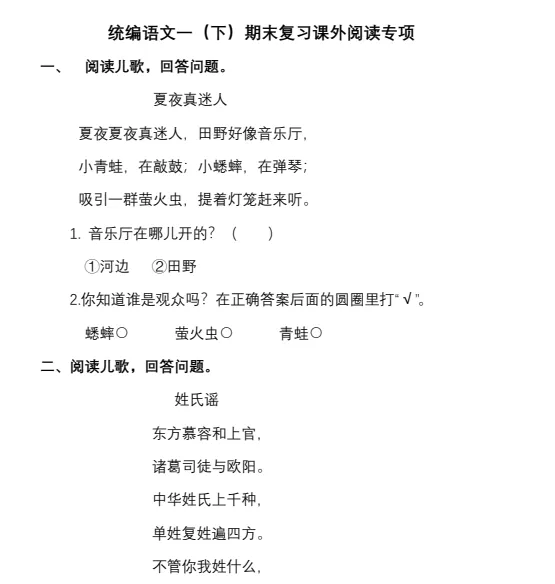 关注免费下载,小学语文1-6 年级下册课外阅读专项练习 阅读理解提升训练