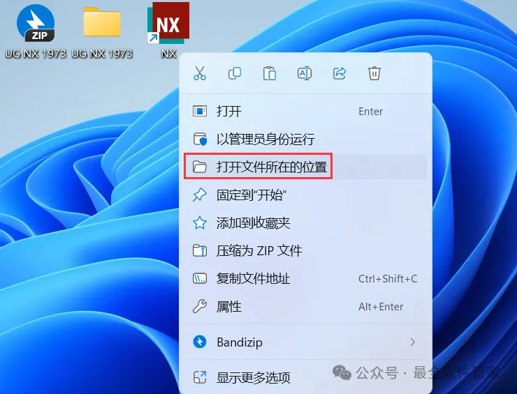 26、右键桌面上的【NX软件图标】,点击【打开文件所在的位置】