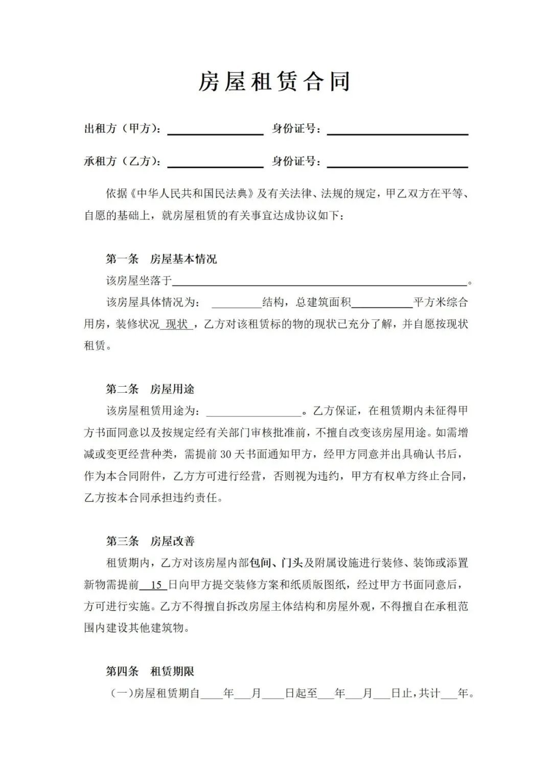 2025新版房屋租赁合同模板word免费下载