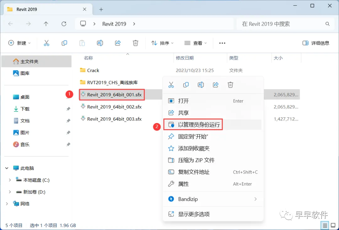 1、下载Revit 2019软件安装包到电脑上,右键选择【解压到Revit 2019\】