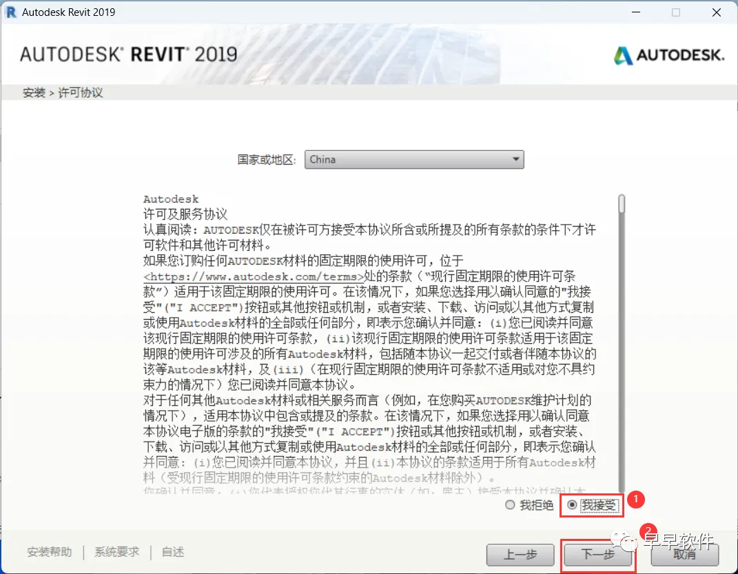 6、勾选【我接受】,再点击【下一步】