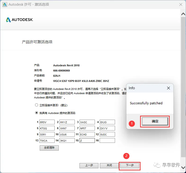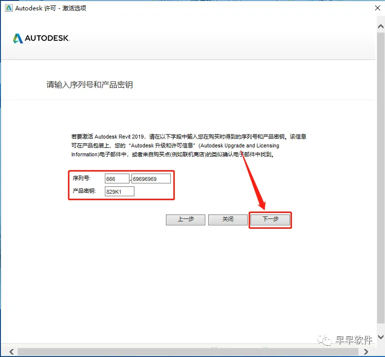 12、序列号输入:666-69696969,产品密钥输入:829K1,再点击【下一步】
