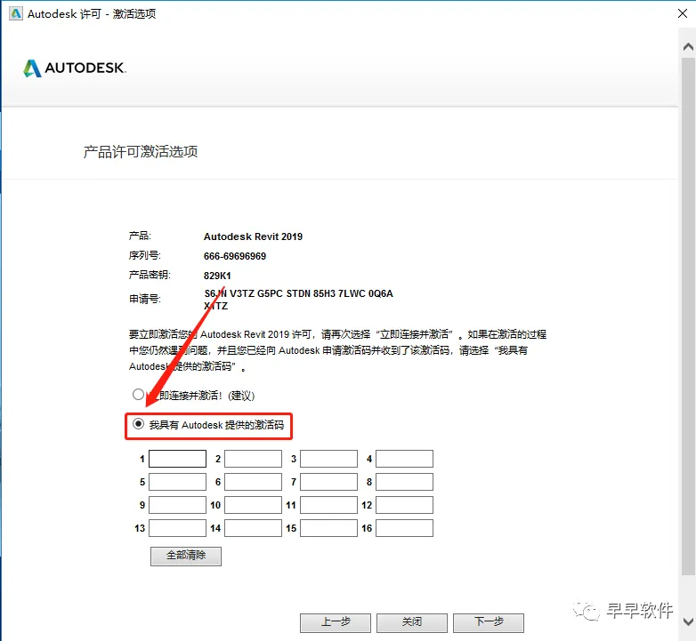 16、点击【我具有Autodesk提供的激活码】