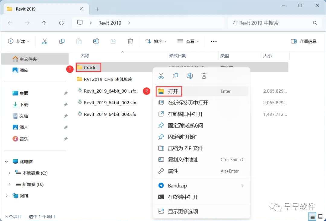 17、回到Revit 2019文件夹,找到【Crack】文件夹,右键【打开】它