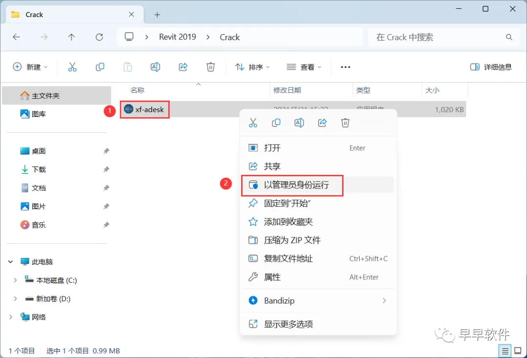 3、找到【Revit_2019…001】应用程序,右键选择【以管理员身份运行】它