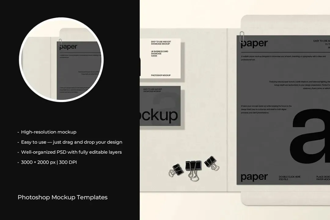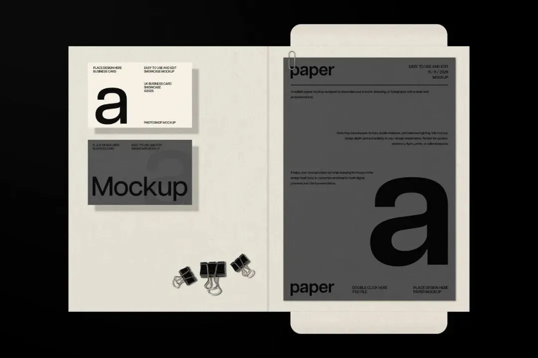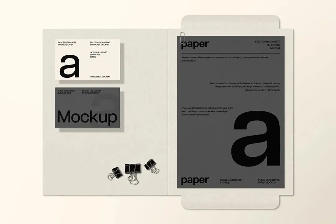 这是一件精致优雅的文具样板,结合了名片和纸质元素,整体简洁专业。采用智能物件图层设计,便于定制,非常适合展示品牌形象、企业设计和高端印刷演示,且分辨率高。