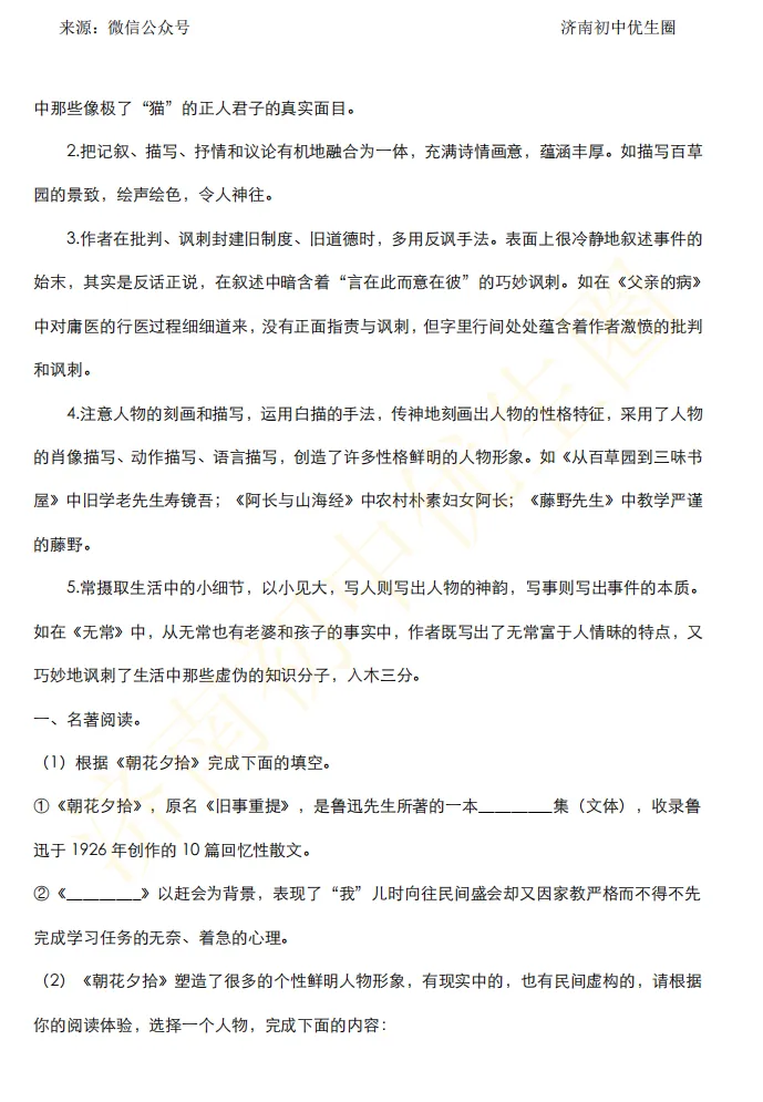部分名著知识点展示