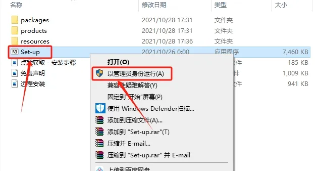 4.在打开的文件夹中,鼠标右击【Set-up】安装程序,选择【以管理员身份运行】。