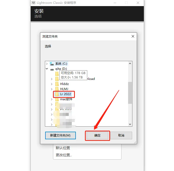 7.可在D盘或者其它磁盘里创建一个新的文件夹,然后点击【确定】即可。