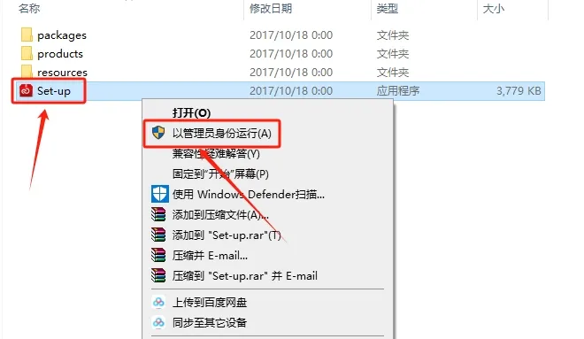 5.鼠标右键【set-up】安装程序,选择【以管理员身份运行】。