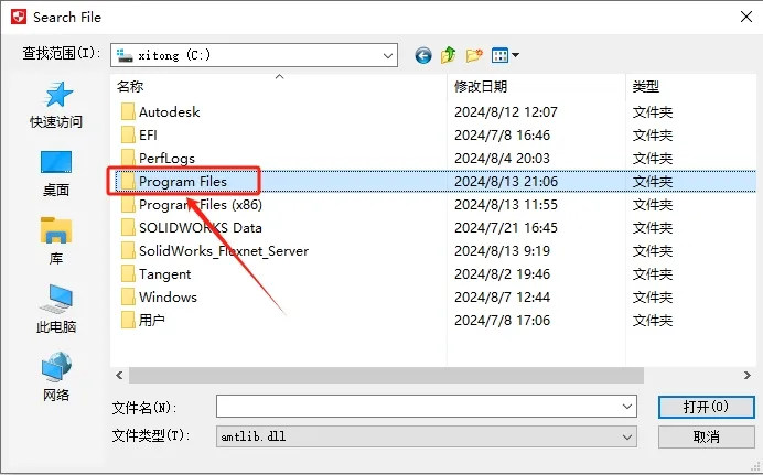 13.找到并选中【amtlib.dll】文件,然后点击【打开】。