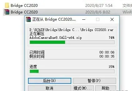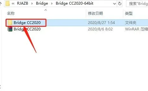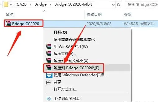 1.打开下载的软件安装包,鼠标右击【Bridge CC2020】压缩包,选择【解压到Bridge CC2020】。