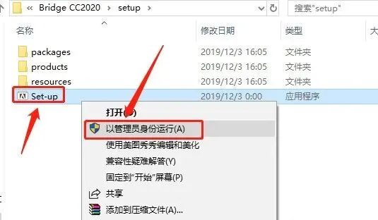 5.鼠标右击【setup】安装程序,选择【以管理员身份运行】。