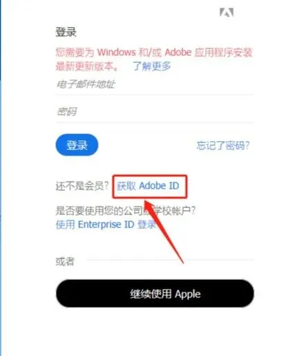 6.输入账号与密码点击【登录】,若没有账号点击【获取Adobe ID】注册账号。