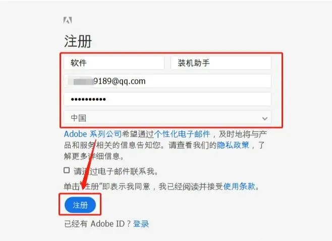 7.填写注册信息,然后点击【注册】。