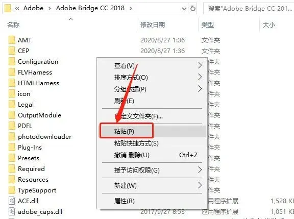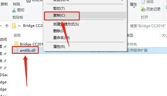 12.返回到开头解压的【Bridge CC2017】文件夹,鼠标右击【AMTLIib】选择【复制】。