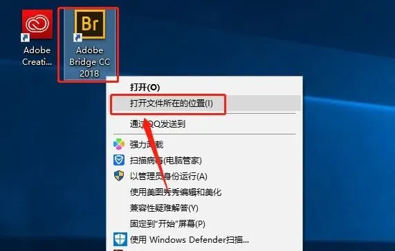 13.鼠标右击桌面【Adobe Bridge CC 2017(32Bit)】软件图标,选择【打开文件所在的位置】。