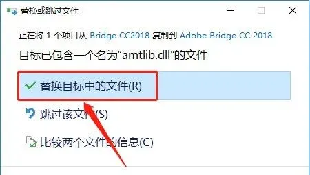 15.选择【替换目标中的文件】。