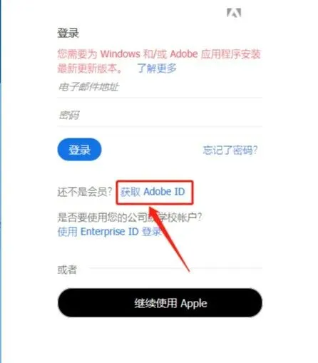 6.输入账号与密码点击【登录】,若没有账号点击【获取Adobe ID】注册账号。